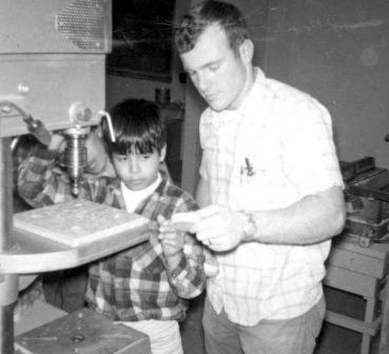 Keywords: frontier boys village frontierboysvillage mennonite board of missions mennoniteboardofmissions rick shellenberger rickshellenberger steve monjaraz stevemonjaraz teacher monochrome blackandwhite indoor black and white Caption: Rick Shellenberger, a teacher at Frontier Boys Village, helping a student, Steve Monjaraz. Colorado Springs, Colorado. 1969. Citation: Mennonite Board of Missions Photograph Collection. Mission to Divide, Colorado. IV-10-7.2 Box 2 Folder 42, Photo #04. Mennonite Church USA Archives - Goshen. Goshen, Indiana. Caption: Rick Shellenberger, a teacher at Frontier Boys Village, helping a student, Steve Monjaraz. Colorado Springs, Colorado. 1969. Citation: Mennonite Board of Missions Photograph Collection. Mission to Divide, Colorado. IV-10-7.2 Box 2 Folder 42, Photo #04. Mennonite Church USA Archives - Goshen. Goshen, Indiana. |