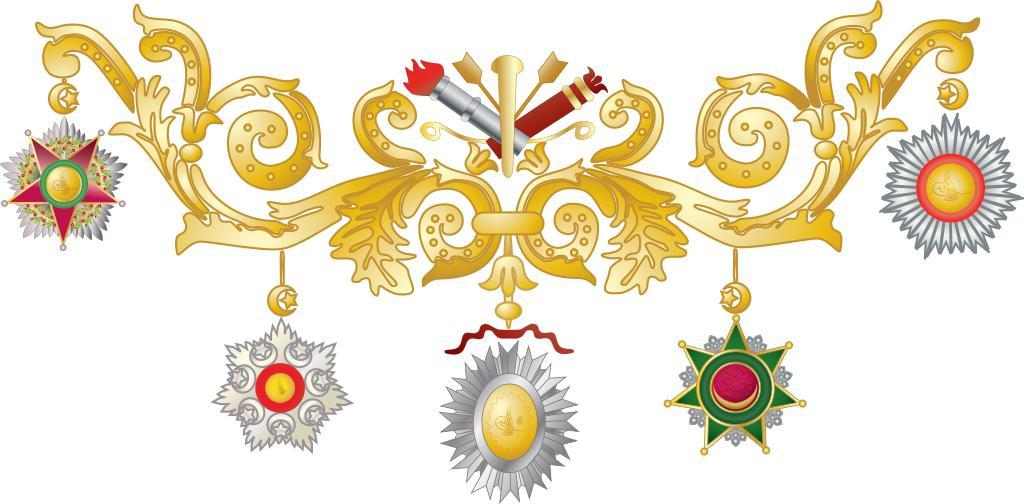 | Keywords: Ridderorde Turkse wapen 1918.svg Detail of the Turkish weapon Wikipedia commons Cutted from Image Osmanli-nisani svg 2008-04-09 Juris Tiltins ImageNote 1 2 161 188 201 1458 717 2 Şefkat Nişanı Order of Charity ImageNoteEnd 1 ImageNote 2 304 447 200 203 1458 717 2 Mecidi Nişan Order of the Medjidie ImageNoteEnd 2 ImageNote 3 625 458 213 257 1458 717 2 Nişan-ı iftihar Order of Glory ImageNoteEnd 3 ImageNote 4 950 449 200 197 1458 717 2 Nişan-ı Osmani Order of Osmani ImageNoteEnd 4 ImageNote 5 1245 161 211 208 1458 717 2 Nişan-ı Ali imtiyaz Order of Honor ImageNoteEnd 5 Heraldic orders Order of the Medjidie |
