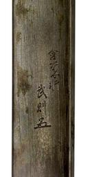 | Keywords: Rikuta Takenori - Kozuka with a Crane - Walters 51755 - Mark A.jpg At the bottom of the kozuka is a crane looking up to the sky Clouds are at the upper edge of the kozuka Cranes are symbols of longevity and an auspicious motif middle Other date century 19 late Edo-Meiji shibuichi gold copper cm 9 6 l accession number 51 755 9593 Henry Walters Baltimore date and mode of acquisition unknown Walters Art Museum Henry Walters Acquired by Henry Walters signature place of origin Mitsugu Hiroshima Japan Walters Art Museum license Kozuka in the Walters Art Museum Media contributed by the Walters Art Museum needs category review Rikuta Takenori |