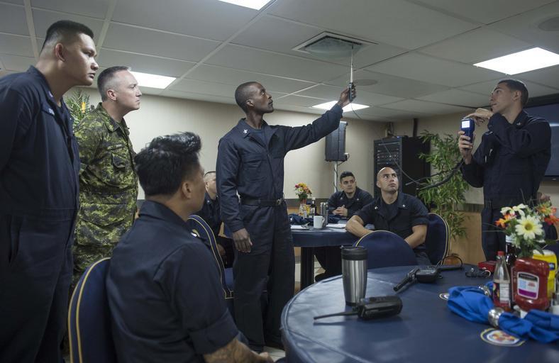 | Keywords: RIMPAC 2014 140724-N-OL084-021.jpg en U S Navy Hospital Corpsman 2nd Class Dylan Rich right a preventive medicine technician with Navy Environmental and Preventive Medicine Unit 6 helps Hospital Corpsman 1st Class Andre Cooper center check air and ventilation quality during an industrial hygiene class aboard the hospital ship USNS Mercy T-AH 19 July 24 2014 in the Pacific Ocean as part of Rim of the Pacific RIMPAC 2014 RIMPAC is a U S Pacific Fleet-hosted biennial multinational maritime exercise designed to foster and sustain international cooperation on the security of the world's oceans U S Navy photo by Mass Communication Specialist 3rd Class Justin W Galvin/Released 2014-07-24 Petty Officer 3rd Class Justin Galvin https //www dvidshub net/image/1477474 140724-N-OL084-021 2014-08-02 00 03 USNS MERCY T-AH 19 AT SEA PD-USGov-Military-Navy USNS Mercy T-AH-19 RIMPAC 2014 Images from DoD uploaded by Fæ |