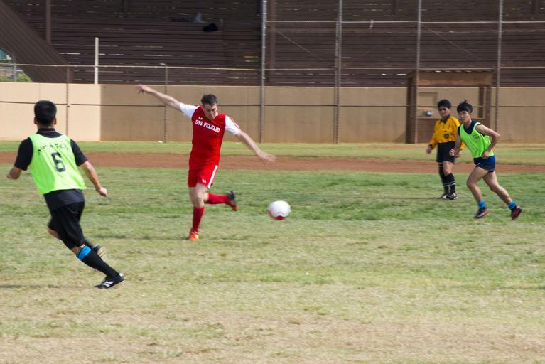 | Keywords: RIMPAC 2014 soccer 140629-N-SU278-119.jpg en Capt Paul C Spedero from Springfield Mass commanding officer of the amphibious assault ship USS Peleliu LHA 5 receives a pass during a soccer match against Sailors from the Republic of Korea Navy at Joint Base Pearl Harbor-Hickam during exercise Rim of the Pacific RIMPAC Exercise 2014 Twenty-two nations more than 40 ships and submarines more than 200 aircraft and 25 000 personnel are participating in RIMPAC exercise from June 26 to Aug 1 in and around the Hawaiian Islands The world ™s largest international maritime exercise RIMPAC provides a unique training opportunity that helps participants foster and sustain the cooperative relationships that are critical to ensuring the safety of sea lanes and security on the world ™s oceans RIMPAC 2014 is the 24th exercise in the series that began in 1971 U S Navy photo by Mass Communication Specialist 3rd Class Will Gaskill/Released 2014-06-29 Petty Officer 3rd Class William Gaskill https //www dvidshub net/image/1434222 140629-N-SU278-119 2014-07-03 19 36 JOINT BASE PEARL HARBOR-HICKAM HI US PD-USGov-Military-Navy Sports at Pearl Harbor Association football in the United States USS Peleliu LHA-5 RIMPAC 2014 Images from DoD uploaded by Fæ Paul C Spedero Jr |