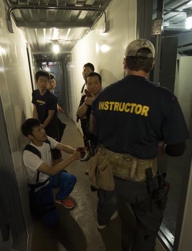| Keywords: RIMPAC 2014 VBSS training 140702-N-PX130-165.jpg en Japan Maritime Self Defense Force sailors from JS Kirishima DDG 174 and JS Ise DDH 182 practice Visit Board Search and Seizure techniques with an instructor from the Center for Security Forces Detachment Pearl Harbor during Rim of the Pacific RIMPAC Exercise 2014 The world's largest international maritime exercise RIMPAC provides a unique training opportunity that helps participants foster and sustain the cooperative relationships that are critical to ensuring the safety of sea lanes and security on the world's oceans Twenty-two nations more than 49 ships six submarines more than 200 aircraft and 25 000 personnel are participating in RIMPAC U S Navy photo by Mass Communication Specialist 1st Class Daniel Gay/Released 2014-07-02 Petty Officer 1st Class Daniel Gay https //www dvidshub net/image/1434328 140702-N-PX130-165 2014-07-03 23 44 FORD ISLAND HI US PD-USGov-Military-Navy JS Ise DDH-182 RIMPAC 2014 Images from DoD uploaded by Fæ |