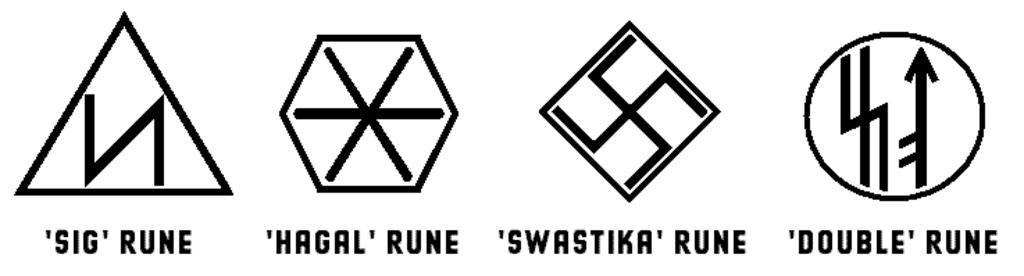 | Keywords: Ring-runes.gif Totenkopf Ring The Sig Rune is displayed twice Expatkiwi talk Uploads Expatkiwi talk Uploads Expatkiwi en PD-shape Original upload log en wikipedia FtCG page en wikipedia Ring-runes gif wikitable - 12 07 28 December 2010 737 × 199 6 750 bytes Expatkiwi w en <nowiki> The Swastika Rune on the ring is in 'active' rather than 'static' pose hencve this edit </nowiki> - 03 49 22 January 2010 737 × 199 6 673 bytes Expatkiwi w en <nowiki> Runes and polygons as depicted upon the SS Totenkopf Ring </nowiki> - 21 41 21 January 2010 737 × 199 6 790 bytes Expatkiwi w en <nowiki> Depiction of the runes that are displayed on the outside of the Totenkopf Ring The Sig Rune is displayed twice </nowiki> Runic writing |