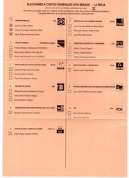 | Keywords: Rioja senado generales 2016.jpg es Papeleta electoral para el Senado - Elecciones Generales de España de 2016 circunscripción de La Rioja 2016-08-05 own B25es other versions cc-zero PD-SpanishGov <br/> De minimis The party logo Ballot papers for the 2016 general election for La Rioja Spain Ballot papers for the Senate in the 2016 Spanish General Elections Uploaded via Campaign bpsge | ||||