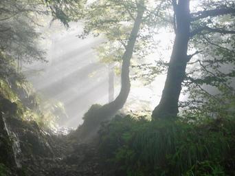 | Keywords: rise morning fog sunbeam mystical spiritual in the early morning mood colourless late summer forest path home garden bavaria trees forest mysterious hiking mountaineering mountains alpine stripes striped morgenstimmung hope target rest silent harmony peaceful |