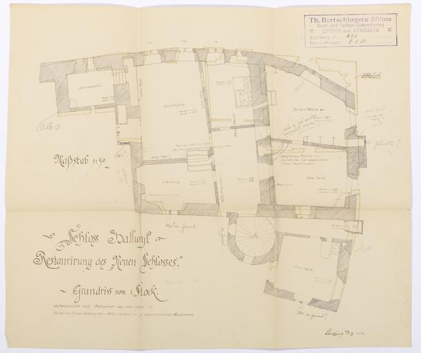 | Keywords: Ritning på Schloss Hallwyl, första våningen - Hallwylska museet - 102188.tif LSH artwork sv Slottet Hallwil <br/>Entwurf zur Restaurierung des neuen Schlosses <br/>Th Bertschingers Söhne Januar 1913 <br/>Hvitkopior 65 5 x 55 7 cm Skala 1 50 <br/>Zeichnung Nr 250 Parterre-Grundriss <br/> >> 251 Grundriss vom 1 Stock <br/> >> 252 Grundriss vom 2 Stock <br/> >> 253 Dachstock-Grundriss <br/> >> 254 Längenschnitt <br/> >> 255 Ansicht von Süden <br/> >> 256 Ostfacade <br/> >> 257 Ansicht von Norden <br/> >> 258 Hofansicht von Westen original caption Ritning på Slottet Hallwyl första våningen <br/> Nyckelord Ritning 1913 paper cardboard HWY place of origin original filename hm_dig11199 113296 inventory number HWY LXIV IV I e d 03 102188 PD Jenny Bergensten <gallery caption Different images of same object > File Ritning på schloss Hallwyl - Hallwylska museet - 102191 tif File Schloss Hallwyl bottenvåningen - Hallwylska museet - 102187 tif File Ritning schloss Hallwyl - Hallwylska museet - 102195 tif File Ritning över Schloss Hallwyl - Hallwylska museet - 102192 tif File Ritning på Schloss Hallwyl - Hallwylska museet - 102193 tif </gallery> Floor plans Schloss Hallwyl Architectural drawings of Hallwyl House Archives Jenny Bergensten Historical images of Switzerland Media contributed by LSH 2015-11 |