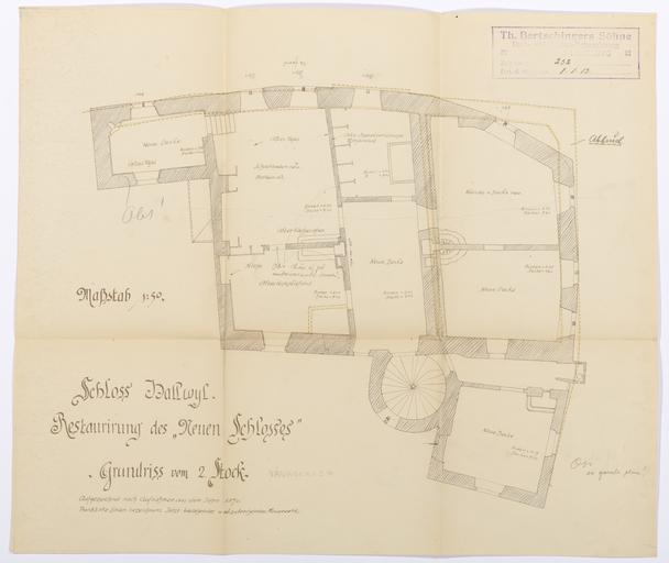 | Keywords: Ritning på schloss Hallwyl - Hallwylska museet - 102191.tif LSH artwork sv Slottet Hallwil <br/>Entwurf zur Restaurierung des neuen Schlosses <br/>Th Bertschingers Söhne Januar 1913 <br/>Hvitkopior 65 5 x 55 7 cm Skala 1 50 <br/>Zeichnung Nr 250 Parterre-Grundriss <br/> >> 251 Grundriss vom 1 Stock <br/> >> 252 Grundriss vom 2 Stock <br/> >> 253 Dachstock-Grundriss <br/> >> 254 Längenschnitt <br/> >> 255 Ansicht von Süden <br/> >> 256 Ostfacade <br/> >> 257 Ansicht von Norden <br/> >> 258 Hofansicht von Westen original caption Ritning på slottet Hallwyl <br/> Nyckelord Hallwyl Föremålsbild 1913 paper cardboard HWY place of origin original filename hm_dig11200 113296 inventory number HWY LXIV IV I e d 03 102191 PD Jenny Bergensten <gallery caption Different images of same object > File Schloss Hallwyl bottenvåningen - Hallwylska museet - 102187 tif File Ritning på Schloss Hallwyl första våningen - Hallwylska museet - 102188 tif File Ritning schloss Hallwyl - Hallwylska museet - 102195 tif File Ritning över Schloss Hallwyl - Hallwylska museet - 102192 tif File Ritning på Schloss Hallwyl - Hallwylska museet - 102193 tif </gallery> Schloss Hallwyl Architectural drawings of Hallwyl House Archives Jenny Bergensten Media contributed by LSH 2015-11 |