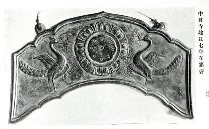 | Keywords: RitualGong ACE1250 Chusonji.JPG en Buddhist ritual gong with peacock relief Cast bronze gilt Pair of peacock motif on both sides 1250-01-01 Date incised January 1 1250 Kamakura period 32 5cm wide Chūson-ji Hiraizumi Iwate Japan ASUKAEN ed TOYO-BIJYUTU 6rd vol 1930 July Anonymus ACE1250 Photo ASUKAEN editor 1930-07-10 RitualGong ACE1250 Chusonji crop jpg RitualGong_ACE1250_Chusonji_Rubbing JPG PD-Japan-oldphoto Metalwork of the Kamakura period National Treasures of Japan crafts | ||||