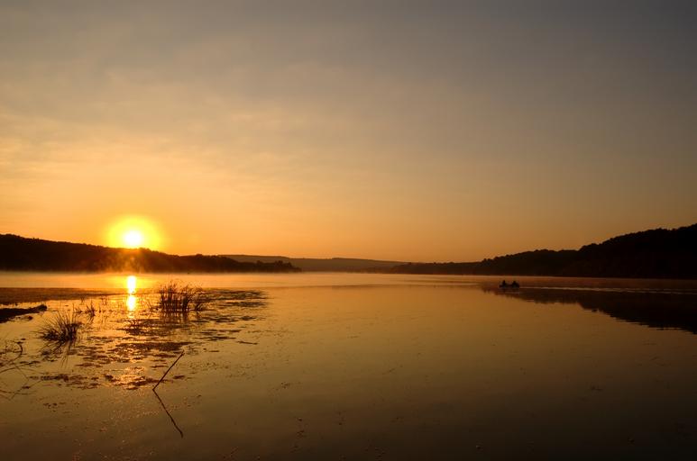 Keywords: river at dawn vacation tourism journey nature landscape water sun the reflections of the sun sunrise