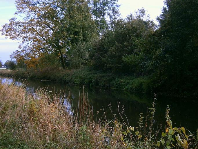 Keywords: river bank waters water savage grasses shrubs bush grass plant autumn trees tree sky clouds blue landscape nature