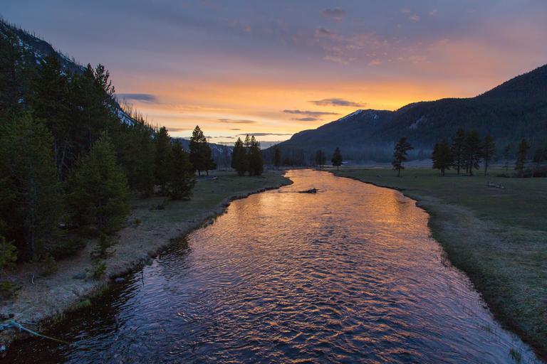 Keywords: river landscape sunset water dusk evening scenic twilight forest park national yellowstone outdoors reflection quiet tranquil peaceful mountain idyllic sky america usa