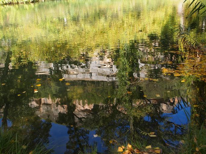 Keywords: river reflection shore trees water stones rocks landscapes rock