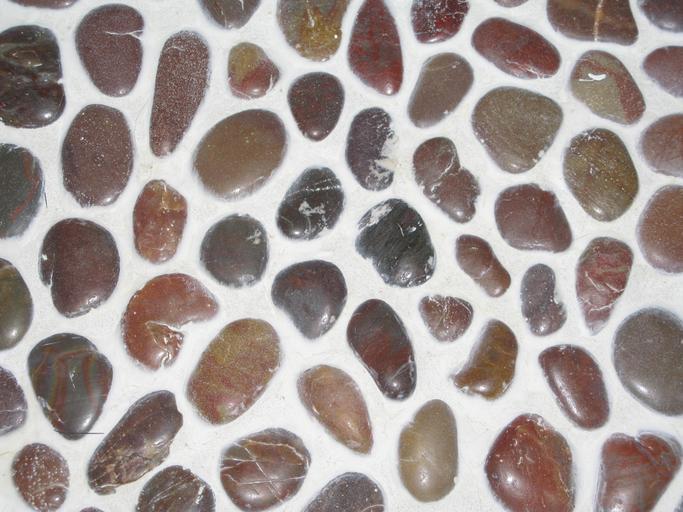 Keywords: river rock brown white caulk mosaic tile natural rocks river bathroom tiling flooring