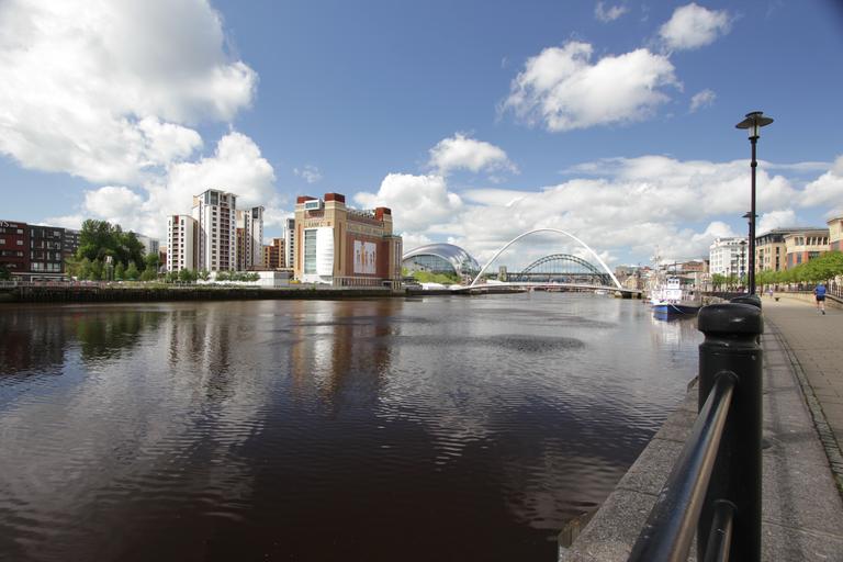 Keywords: river tyne newcastle england bridge water north east uk landmark gateshead landscape quayside city tyneside baltic flour mills millennium bridge sage architecture riverbank iconic