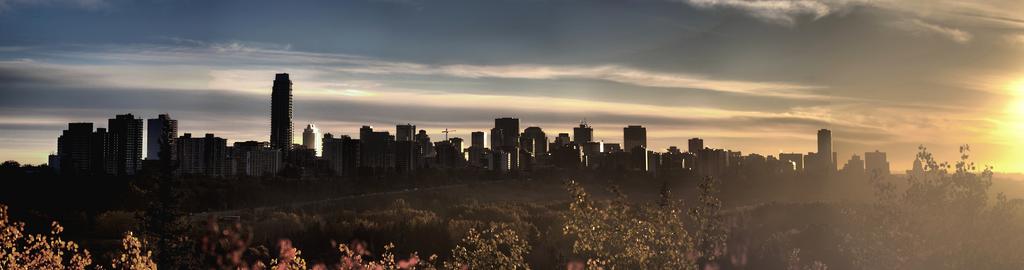 Keywords: River-Valley-Edmonton-Alberta-Canada-Stitch-03A.jpg en Dawn over the North Saskatchewan River valley in Edmonton Alberta Canada 2016-09-26 07 53 54 own WinterE229 other versions cc-zero North Saskatchewan River Valley in Edmonton