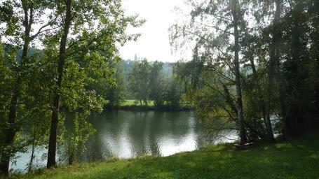 Keywords: river water bank main nature sky reflections scenic river landscape mainfranken trees shadow light landscape mood romantic