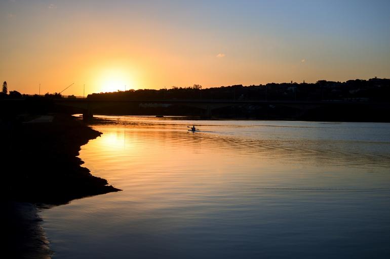 Keywords: river water leisure kayak paddling sunset silhouettes scene atmospheric alone quiet peaceful sun light colors orange glow reflection