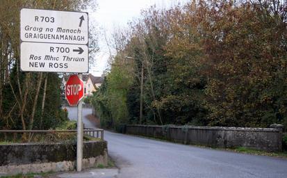 Keywords: RiverBarrowBridgeGraigue.jpg en R703 crosses the River Nore in Thomastown own Sarah777 2007-10-31 Thomastown Bridges in County Kilkenny October 2007 in Ireland Roads in County Kilkenny Road signs in County Kilkenny Pictures by Sarah777