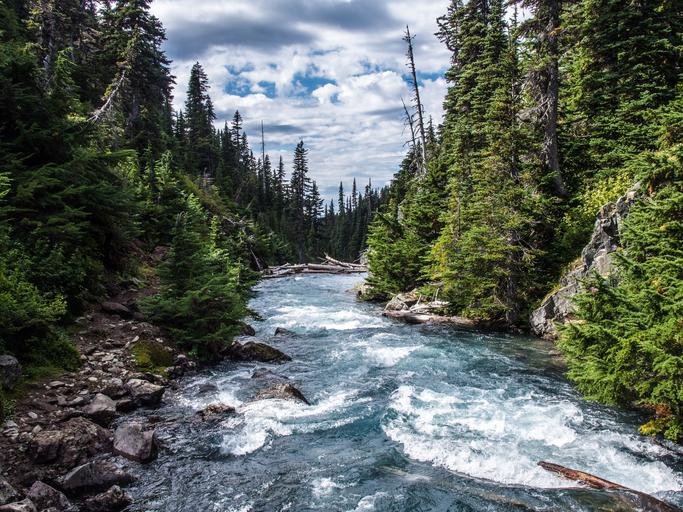 Keywords: rivers streams flowing blue water wild forests trees perennials woods flora nature rocks greenery rapids white cloudy sky scenic scenery natural outdoors bright fresh environment