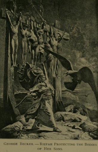 Keywords: Rizpah painting.jpg Painting of a Biblical scene Heroines of the Bible in Art 1900 Book author is Clara Erskine Clement PD-Art Old Testament figures Women in art books of Samuel Saul
