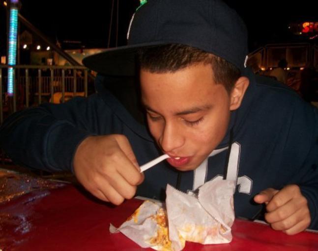 Keywords: Rizzolive.jpg en Rizzo eating haggis at the County Fair own Mjfurlow Mjfurlow Mjfurlow People eating Males with baseball caps