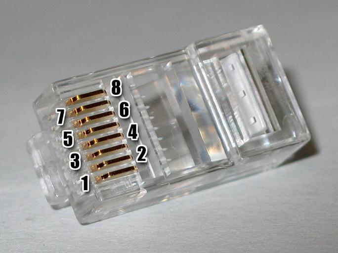 Keywords: Rj45plug-8p8c.png RJ45 Connector with pin numbers overlayed Gutza based on File Uncrimped rj-45 connector close-up jpg 2014-02-14 Gutza Mike1024 RJ-45 connectors