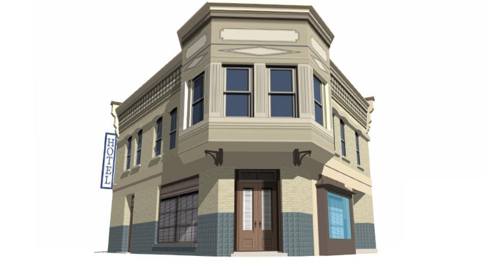 | Keywords: RKO backlot main hotel - west entrance.jpg Other views <gallery> Image RKO backlot - main hotel jpg Image RKO backlot main hotel views jpg </gallery> 2D image exported from a 3D model of a building that once existed until 1976 on the now demolished RKO Studios backlot called Forty Acres Atypical of most sets at 40 Acres this structure was a complete building with a practical roof and some interior sets on the main floor The building was used as a film set and appeared on television's The Andy Griffith Show as Walker's Drug Store It was featured in the 1949 film noir classic The Set-Up as the Hotel Cozy; and appeared again although not as extensively on Star Trek's episode of Miri as the Rusk Hotel Showing the west entrance of the building as it once stood the 3D model was constructed in SketchUp 6 0 in 2008 by Bill Wrigley self made designed in Google Sketchup 6 0 2008-03 Bill Wrigley Film sets RKO Studios Architectural drawings by SketchUp Architectural 3D drawings CAAD |