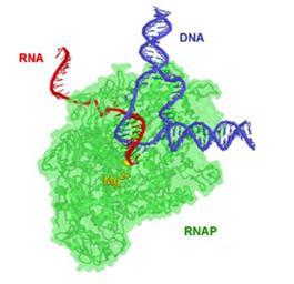 | Keywords: RNAP TEC small.jpg biology Image of a model of Thermus aquaticus RNA Polymerase complexed to DNA and RNA 2007-06-06 Created with the rendering program Protein Explorer http //connection ebscohost com/c/articles/71877792/rommie-amaro-protein-explorer using coordinates 1H38 deposited at the RCSB PDB repository http //www rcsb org/pdb/explore do structureId 1h38 User Abbondanzieri on the English Wikipedia PD Protein model en English Wikipedia Abbondanzieri Enzymes RNA Cell diagrams Transcription genetics RNA polymerase |
