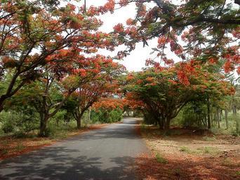 Keywords: road alley flowering trees scenic countryside springtime may flower outdoors gul mohur