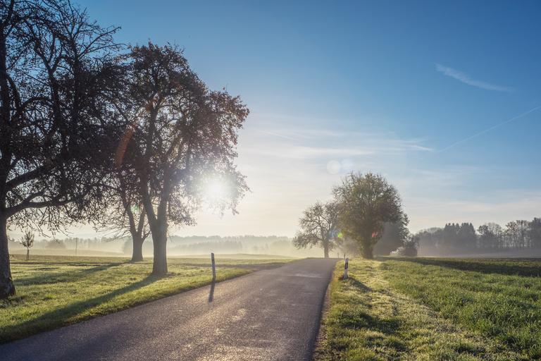 Keywords: road away sunrise sunset trees avenue sky landscape nature just flat silhouette