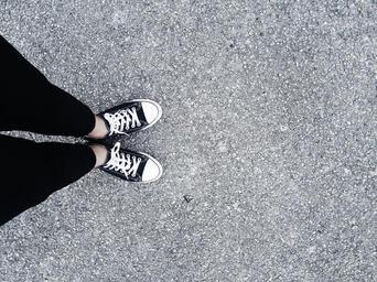 Keywords: road converse shoes black pants foot ground hipster