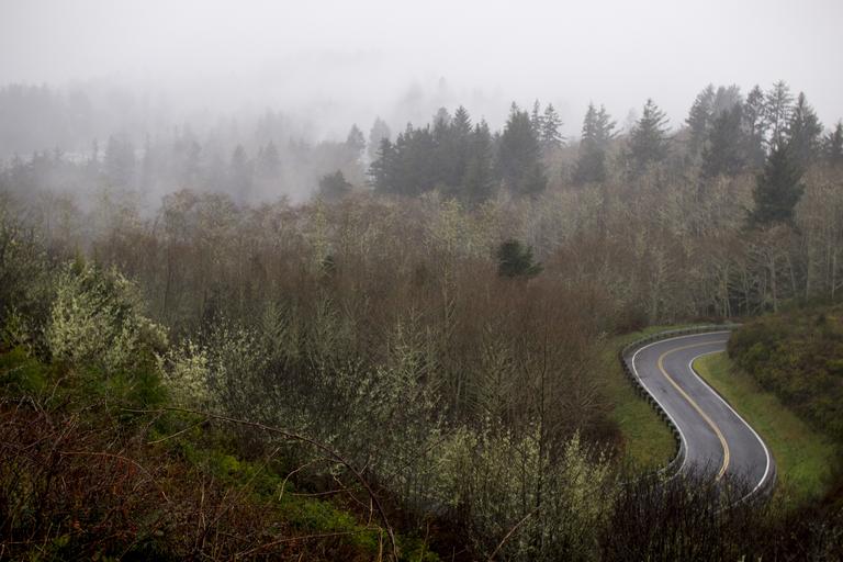 Keywords: road fog forest fall