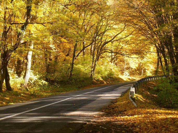 Keywords: road forest nature forest road trees autumn wood green landscape tour light and shadow sunlight sunshine log beech mountain plant orange bush beauty