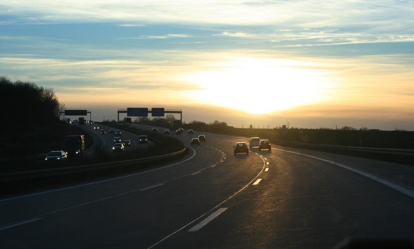 Keywords: road highway autos sonnernuntergang traffic remote traffic drive sky travel auto lights