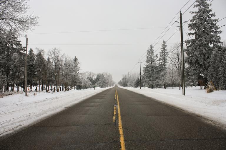 Keywords: road winter snow cold travel highway pavement tar tarmac telephone pole hydro hydro lines rural country destiny journey weather season white frozen forest drive asphalt countryside