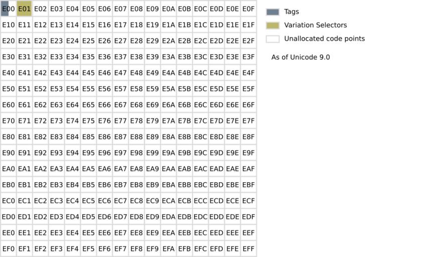 | Keywords: Roadmap to Unicode SSP multilingual.svg en A graphical representation of Unicode's Supplementary Special-purpose Plane SSP Each numbered box represents 256 code points nl Een grafische weergave van het Supplementary Special-purpose Plane SSP van Unicode Elk genummerd vakje stelt 256 code points voor de Eine grafische Darstellung der Supplementary Special-purpose Plane SSP des Unicode-Standards Jedes Kästchen steht für 256 Codepunkte ru Схематичное п едставление специализи ованной дополнительной плоскости SSP Юникода Каждая п онуме ованная ячейка соде жит 256 кодовых позиций uk Схематичне уявлення спеціалізованої додаткової площині SSP Юнікоду Self-made using this perl script and information from http //www unicode org/ Unicode 2016-07-31 Drmccreedy left thumb English-only version Translate yes Purge Unicode Unicode SSP Writing systems |