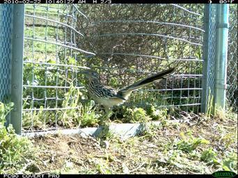 | Keywords: birds stateroute23 remote camera remotecamera animals animalsandinsects wildlife southroute23 outdoor photo border Greater roadrunner at the eastern one-way gate near the 23 Freeway. Greater roadrunner at the eastern one-way gate near the 23 Freeway. |