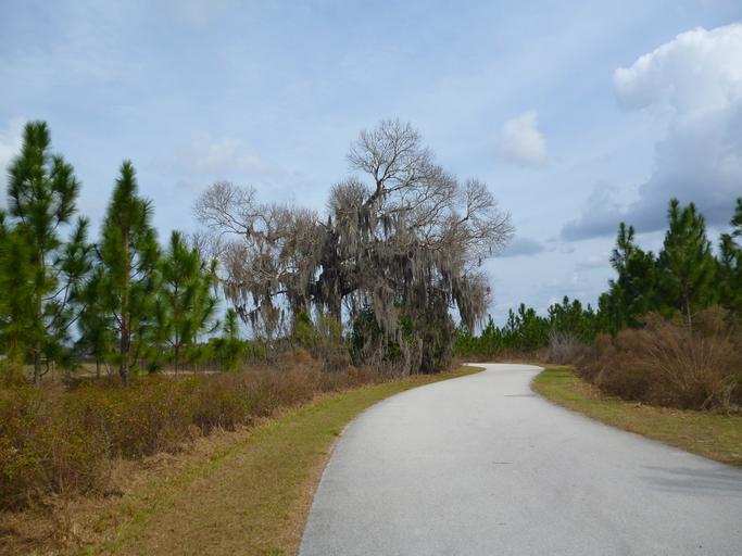 Keywords: roads woods trees plants pathways blue sky greenery green perennials wild landscapes scenic scenery bright day summer cloudy