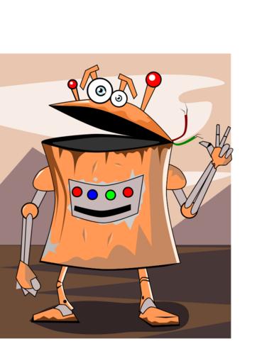 Keywords: robot rusty old dirty scratched bucket