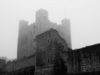 Keywords: blackandwhite monochrome architecture rampart outdoor black and white Rochester Castle stands on the east bank of the River Medway in Rochester, Kent, South East England. The 12th-century keep or stone tower, which is the castle's most prominent feature, is one of the best preserved in England or France. Situated on the River Medway and Watling Street, Rochester served as a strategically important royal castle. During the late medieval period it helped protect England's south-east coast from invasion. The first castle at Rochester was founded in the aftermath of the Norman Conquest. It was given to Bishop Odo, probably by his half-brother William the Conqueror. During the Rebellion of 1088 over the succession to the English throne , Odo supported Robert Curthose, the Conqueror's eldest son, against William Rufus. It was during this conflict that the castle first saw military action; the city and castle were besieged after Odo made Rochester a headquarters for the rebellion. After the garrison capitulated, this first castle was abandoned. Between 1087 and 1089, Rufus asked Gundulf, Bishop of Rochester, to build a new stone castle at Rochester. He established the current extent of the castle. Though much altered through the centuries, some parts of Gundulf's work survive. In 1127 King Henry I granted the castle to the Bishops of Canterbury in perpetuity. William de Corbeil built the massive keep that still dominates the castle today. Throughout the 12th century the castle remained in the custody of the archbishops. During the First Barons' War (1215–1217) in King John's reign, baronial forces captured the castle from Archbishop Stephen Langton and held it against the king, who then besieged it. The Barnwell chronicler remarked "Our age has not known a siege so hard pressed nor so strongly resisted". After resisting for just over seven weeks, the garrison surrendered. Although the castle had been greatly damaged, with breaches in the outer walls and one corner of the keep collapsed, it was hunger that eventually forced the defenders' hand. The castle did not stay under John's control for long: in 1216 it was captured by the French Prince Louis, who was the new leader of the baronial faction. John died and was succeeded by his son King Henry III in 1216; the next year, the war ended and the castle was taken under direct royal control. Rochester was besieged for the third time in 1264 during the Second Barons' War (1264–1267). The castle's royal constable, Roger de Leybourne, held Rochester in support of Henry III. Rebel armies led by Simon de Montfort and Gilbert de Clare entered the city and set about trying to capture the castle. Again the castle's defenders resisted, though this time with a different outcome. After a week, the rebel armies raised the siege in the face of relief from Henry himself. Although the garrison did not surrender, the castle suffered extensive damage that was not repaired until the following century. The castle saw military action for the last time in 1381 when it was captured and ransacked during the Peasants' Revolt. As Rochester Castle fell out of use its materials were reused elsewhere and custodianship relinquished by the Crown. The castle and its grounds were opened to the public in the 1870s as a park. At various points during the 19th and 20th centuries repairs were carried out. The castle is protected as a Grade I listed building and Scheduled Monument. Today the ruins are in the guardianship of English Heritage and open to the public. Rochester Castle stands on the east bank of the River Medway in Rochester, Kent, South East England. The 12th-century keep or stone tower, which is the castle's most prominent feature, is one of the best preserved in England or France. Situated on the River Medway and Watling Street, Rochester served as a strategically important royal castle. During the late medieval period it helped protect England's south-east coast from invasion. The first castle at Rochester was founded in the aftermath of the Norman Conquest. It was given to Bishop Odo, probably by his half-brother William the Conqueror. During the Rebellion of 1088 over the succession to the English throne , Odo supported Robert Curthose, the Conqueror's eldest son, against William Rufus. It was during this conflict that the castle first saw military action; the city and castle were besieged after Odo made Rochester a headquarters for the rebellion. After the garrison capitulated, this first castle was abandoned. Between 1087 and 1089, Rufus asked Gundulf, Bishop of Rochester, to build a new stone castle at Rochester. He established the current extent of the castle. Though much altered through the centuries, some parts of Gundulf's work survive. In 1127 King Henry I granted the castle to the Bishops of Canterbury in perpetuity. William de Corbeil built the massive keep that still dominates the castle today. Throughout the 12th century the castle remained in the custody of the archbishops. During the First Barons' War (1215–1217) in King John's reign, baronial forces captured the castle from Archbishop Stephen Langton and held it against the king, who then besieged it. The Barnwell chronicler remarked "Our age has not known a siege so hard pressed nor so strongly resisted". After resisting for just over seven weeks, the garrison surrendered. Although the castle had been greatly damaged, with breaches in the outer walls and one corner of the keep collapsed, it was hunger that eventually forced the defenders' hand. The castle did not stay under John's control for long: in 1216 it was captured by the French Prince Louis, who was the new leader of the baronial faction. John died and was succeeded by his son King Henry III in 1216; the next year, the war ended and the castle was taken under direct royal control. Rochester was besieged for the third time in 1264 during the Second Barons' War (1264–1267). The castle's royal constable, Roger de Leybourne, held
