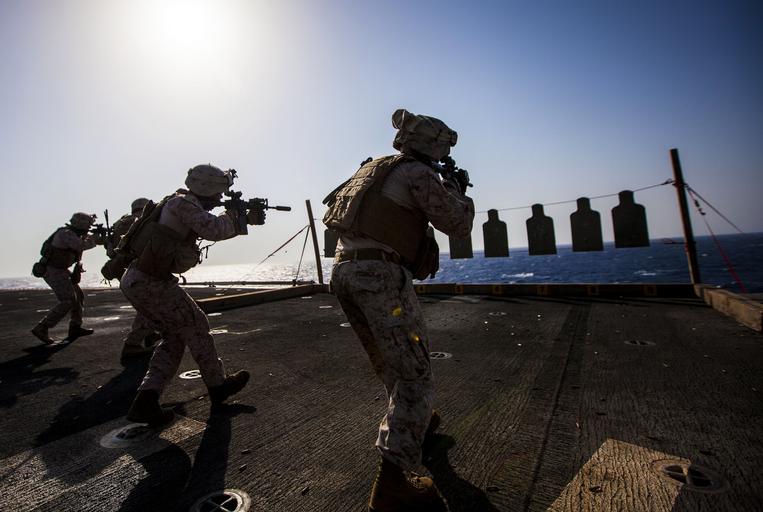| Keywords: Rock and Fire with It (9321540696).jpg Marines assigned to Scout Sniper Platoon Battalion Landing Team 3/2 26th Marine Expeditionary Unit MEU conduct an M4 Carbine live-fire exercise on the flight deck of the USS Kearsarge at sea July 18 2013 The 26th MEU is a Marine Air-Ground Task Force forward-deployed to the U S 5th Fleet area of responsibility aboard the Kearsarge Amphibious Ready Group serving as a sea-based expeditionary crisis response force capable of conducting amphibious operations across the full range of military operations U S Marine Corps photo by Sgt Christopher Q Stone/Released https //www flickr com/photos/marine_corps/9321540696/ Rock and Fire with It 2013-07-18 08 29 https //www flickr com/people/40927340 N03 Marines from Arlington VA United States PD-USGov United States Marine Corps Official Page https //flickr com/photos/40927340 N03/9321540696 2016-09-03 22 31 00 United States Government Work Aboard USS Kearsarge LHD-3 |