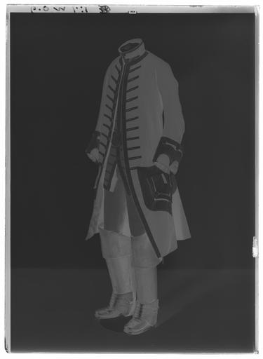 | Keywords: Rock, justaucorps, i blått kläde till Gustav IIIs franska jaktdräkt - Livrustkammaren - 61867-negative.tif LSH artwork LeDuc Skräddare sv Rock i blått kläde med stora galondekorerade fickor och gudkantade knapphål längs med båda framkanterna Modellen är figurnära med hög krage har svängd framkant som öppnar sig nedåt sidsömmarna är kraftigt utåtvinklade med veckade sidsprund Ärmarna är smala med stora mörkröda sammetsmanschetter dekorerade med galoner Klädet är i en mycket fin kvalitet troligen fransktillverkat Rocken har flera öppet skurna kanter tex kanten nedtill och kanten fram Kragen har rött sammetsfoder och en smal guldgalon mitt fram med två runda metallknappar Rygen bak har samma förstärkning uppe i nacken som västen Kragen har rött sammetsfoder och en smal guldgalon mitt fram med två runda metallknappar Sprundet mitt bak saknar överlappning är galonkantat samt ytterligare markerat med tre guldkantade knapphål på tvären från sprundet och ut åt sidorna De översta kant i kant med guldgalonen och därefter med 5 5 cm mellanrum Där knapphålen slutar finns en slags inprovning som gör att vidden i rocken lägger sig som ett extra veck på bakstycket Sprundöppningen är 45 cm lång Sidsprunden 40 cm långa kantas också av guldgalon som även inramar knappen som sitter i sidan ovanför vecken Rocken är dekorerad med fyra sortes galoner På kragen en smal ca 1 cm bred enklare sort Längs med framkanten sitter en guldgalon 2 5 cm bred med sick sack mönster den finns runt halsen fram på båda sidor om sprundet mitt bak på båda sidor om sidosprundet I sidosprundet är de glänsande i guld Ficklocken är nästan helt galonklädda 2 5 cm galonen kantar ficklocken och innanför denna sitter en 5 7 cm bred i både silver och guld Denna breda silver och guldgalon sitter runt hela ficklocket på själva rocken vilket gör fickan mycket framträdande Rocken har 11 större knappar och 11 riktiga knapphål samt 11 oöppnade på högra sidan för att få en symmetri i dekoren Alla knapphål är ställda lite snett uppåt De är 7 cm långa och öppningen 5 cm Översta knappen sitter 5 cm ned och därefter med 5 cm mellanrum Tre metallhyskor och hakar gömmer sig i framkanten mellan kläde och foder övre hyskan saknas Ärmarna är snäva med överärm och underärm som är svängda Manschetten är påsydd vidare än själva ärmen den är ca 15-16cm bred och utsidan är i röd sammet Längs kanten sitter en guldgalon 2 5 cm bred och de lodräta sömmarna täcks av en bredare guldgalon 3 5 cm som endast förekommer här på plagget Mellan guldgalonerna sitter den breda silver/guld galonen samma som runt fickorna den är lagt i bågmönster vilket gör att den har sytts fats med småveck i innerkurvorna Manchetten knäpps med två knappar fram och en bak samma knappar som på rocken Knapparna är förgyllda och har ett flätat mönster på ovansidan kärnan är av trä Antal knappar 27 st 2 mindre och 25 större 16 mm Galoner 14 meter och 61 cm 827 cm 2 5 cm br 425cm 5 7 cm br 80 cm 3 5 cm br 75 cm 1 cm br Foder i rött ylle Inga spår av ändringar Kilar i sidosprundets veck i övrigt inga skarvar Sidovecken är ihopsydda likaså vecken bak Troligen gjort senare Kragen är fodrad i röd sammet Fickpåsarna i grovt naturfärgat linne eller hampa Dräkten användes av Gustav III som kronprins då han besökte Ludvig XV för att deltaga i den första hovjakten i Versailles 1771 02 15 Enligt brev till Lovisa Ulrika från Gustav III så kan detta vara den dräkt som Ludvig skänkt Gustav för detta tillfälle 1790 års klädkammarinventarium nämner denna dräkt under No 110 citat från Gudruns avskrift En Jagt Klädning nyttjad då Konungen såsom Kron Prins År 1771 var i Frankrike bestående af Råck Väst och Böxor Råcken af Mörkblått Kläde med Krusiga förgyllda Knappar samt Krage och uppslag af Rödt Sammet med Gulld- och Silfver Galoner fordrad med rödt Ratin Västen af Skarlakan med förgyllda knappar och Gulld-Galoner fordrad med hvitt Sarge de Sojie Böxorne af Skarlakan med silkes Knäband och guldtrådsknappar En tillhörig Hirschfängare med stålfäste i Basrelief incrusterad med guld och gehäng af sämsk med guldgalon original caption Gustav III s franska resa 1771 broadcloth Färg blå d1 - dräkt - yttermaterial material kläde - gold Färg guld d4 - dräkt - passpoaler band kantning uppslag material guldgalon - silver Färg silver d4 - dräkt - passpoaler band kantning uppslag material silvergalon - woolen Färg röd d2 - dräkt - foder material ylletyg - velvet Färg röd d6 - dräkt - krage epåletter manschetter material silkesammet size mm 870 midja size mm 140 manschett size mm 1461 galoner size mm 1080 size mm 1070 size mm 3840 nedtill size mm 600 ärm LRK Gustav III av Sverige Idrotts- o turistutställningen i Berlin 1894 Jakt 1973 Läckö slott Livrustkammarens basutställning 1978 Kungligt klädd 1987-1989 Gustav III - Kläder för tid och evighet 1998 Jakten - konstnärens motiv - jägarens mål 2003 l'Homme Paré 2005-2006 Trogna vänner - Kungliga hästar och hundar 2011-2012 Museiverket/Finlands nationalmuseum Fêtes et divertissement á la cour 2016-2017 Chäteau de Versailles Visitors to Versailles 1682-1789 2017-2018 Chäteau de Versailles Visitors to Versailles 1682-1789 2018 Metropolitan Museum place of origin original filename LN_B16557_019437 48200 inventory number LRK 11596 61867 CC0 Rock justaucorps i blått kläde till Gustav IIIs franska jaktdräkt - Livrustkammaren - 61867 tif <gallery caption Different images of same object > File Rock justaucorps i blått kläde till Gustav IIIs franska jaktdräkt - Livrustkammaren - 10503 tif File Rock justaucorps i blått kläde till Gustav IIIs franska jaktdräkt - Livrustkammaren - 19065 tif File Rock justaucorps i blått kläde till Gustav IIIs franska jaktdräkt - Livrustkammaren - 70429 tif File Gustav IIIs franska jaktdräkt använd vid hovjakt i Versai