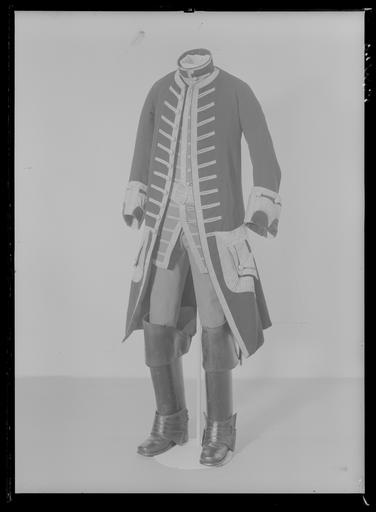 | Keywords: Rock, justaucorps, i blått kläde till Gustav IIIs franska jaktdräkt - Livrustkammaren - 1943.tif LSH artwork LeDuc Skräddare sv Rock i blått kläde med stora galondekorerade fickor och gudkantade knapphål längs med båda framkanterna Modellen är figurnära med hög krage har svängd framkant som öppnar sig nedåt sidsömmarna är kraftigt utåtvinklade med veckade sidsprund Ärmarna är smala med stora mörkröda sammetsmanschetter dekorerade med galoner Klädet är i en mycket fin kvalitet troligen fransktillverkat Rocken har flera öppet skurna kanter tex kanten nedtill och kanten fram Kragen har rött sammetsfoder och en smal guldgalon mitt fram med två runda metallknappar Rygen bak har samma förstärkning uppe i nacken som västen Kragen har rött sammetsfoder och en smal guldgalon mitt fram med två runda metallknappar Sprundet mitt bak saknar överlappning är galonkantat samt ytterligare markerat med tre guldkantade knapphål på tvären från sprundet och ut åt sidorna De översta kant i kant med guldgalonen och därefter med 5 5 cm mellanrum Där knapphålen slutar finns en slags inprovning som gör att vidden i rocken lägger sig som ett extra veck på bakstycket Sprundöppningen är 45 cm lång Sidsprunden 40 cm långa kantas också av guldgalon som även inramar knappen som sitter i sidan ovanför vecken Rocken är dekorerad med fyra sortes galoner På kragen en smal ca 1 cm bred enklare sort Längs med framkanten sitter en guldgalon 2 5 cm bred med sick sack mönster den finns runt halsen fram på båda sidor om sprundet mitt bak på båda sidor om sidosprundet I sidosprundet är de glänsande i guld Ficklocken är nästan helt galonklädda 2 5 cm galonen kantar ficklocken och innanför denna sitter en 5 7 cm bred i både silver och guld Denna breda silver och guldgalon sitter runt hela ficklocket på själva rocken vilket gör fickan mycket framträdande Rocken har 11 större knappar och 11 riktiga knapphål samt 11 oöppnade på högra sidan för att få en symmetri i dekoren Alla knapphål är ställda lite snett uppåt De är 7 cm långa och öppningen 5 cm Översta knappen sitter 5 cm ned och därefter med 5 cm mellanrum Tre metallhyskor och hakar gömmer sig i framkanten mellan kläde och foder övre hyskan saknas Ärmarna är snäva med överärm och underärm som är svängda Manschetten är påsydd vidare än själva ärmen den är ca 15-16cm bred och utsidan är i röd sammet Längs kanten sitter en guldgalon 2 5 cm bred och de lodräta sömmarna täcks av en bredare guldgalon 3 5 cm som endast förekommer här på plagget Mellan guldgalonerna sitter den breda silver/guld galonen samma som runt fickorna den är lagt i bågmönster vilket gör att den har sytts fats med småveck i innerkurvorna Manchetten knäpps med två knappar fram och en bak samma knappar som på rocken Knapparna är förgyllda och har ett flätat mönster på ovansidan kärnan är av trä Antal knappar 27 st 2 mindre och 25 större 16 mm Galoner 14 meter och 61 cm 827 cm 2 5 cm br 425cm 5 7 cm br 80 cm 3 5 cm br 75 cm 1 cm br Foder i rött ylle Inga spår av ändringar Kilar i sidosprundets veck i övrigt inga skarvar Sidovecken är ihopsydda likaså vecken bak Troligen gjort senare Kragen är fodrad i röd sammet Fickpåsarna i grovt naturfärgat linne eller hampa Dräkten användes av Gustav III som kronprins då han besökte Ludvig XV för att deltaga i den första hovjakten i Versailles 1771 02 15 Enligt brev till Lovisa Ulrika från Gustav III så kan detta vara den dräkt som Ludvig skänkt Gustav för detta tillfälle 1790 års klädkammarinventarium nämner denna dräkt under No 110 citat från Gudruns avskrift En Jagt Klädning nyttjad då Konungen såsom Kron Prins År 1771 var i Frankrike bestående af Råck Väst och Böxor Råcken af Mörkblått Kläde med Krusiga förgyllda Knappar samt Krage och uppslag af Rödt Sammet med Gulld- och Silfver Galoner fordrad med rödt Ratin Västen af Skarlakan med förgyllda knappar och Gulld-Galoner fordrad med hvitt Sarge de Sojie Böxorne af Skarlakan med silkes Knäband och guldtrådsknappar En tillhörig Hirschfängare med stålfäste i Basrelief incrusterad med guld och gehäng af sämsk med guldgalon original caption Gustav III s franska resa 1771 broadcloth Färg blå d1 - dräkt - yttermaterial material kläde - gold Färg guld d4 - dräkt - passpoaler band kantning uppslag material guldgalon - silver Färg silver d4 - dräkt - passpoaler band kantning uppslag material silvergalon - woolen Färg röd d2 - dräkt - foder material ylletyg - velvet Färg röd d6 - dräkt - krage epåletter manschetter material silkesammet size mm 870 midja size mm 140 manschett size mm 1461 galoner size mm 1080 size mm 1070 size mm 3840 nedtill size mm 600 ärm LRK Gustav III av Sverige Idrotts- o turistutställningen i Berlin 1894 Jakt 1973 Läckö slott Livrustkammarens basutställning 1978 Kungligt klädd 1987-1989 Gustav III - Kläder för tid och evighet 1998 Jakten - konstnärens motiv - jägarens mål 2003 l'Homme Paré 2005-2006 Trogna vänner - Kungliga hästar och hundar 2011-2012 Museiverket/Finlands nationalmuseum Fêtes et divertissement á la cour 2016-2017 Chäteau de Versailles Visitors to Versailles 1682-1789 2017-2018 Chäteau de Versailles Visitors to Versailles 1682-1789 2018 Metropolitan Museum place of origin original filename LN_B16560_019440 48200 inventory number LRK 11596 1943 CC0 Rock justaucorps i blått kläde till Gustav IIIs franska jaktdräkt - Livrustkammaren - 1943-negative tif <gallery caption Different images of same object > File Rock justaucorps i blått kläde till Gustav IIIs franska jaktdräkt - Livrustkammaren - 10503 tif File Rock justaucorps i blått kläde till Gustav IIIs franska jaktdräkt - Livrustkammaren - 19065 tif File Rock justaucorps i blått kläde till Gustav IIIs franska jaktdräkt - Livrustkammaren - 61867 tif File Rock justaucorps i blått kläde till Gustav IIIs franska jakt