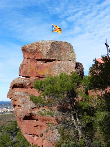 Keywords: rock mountain priorat red sandstone catalan flag