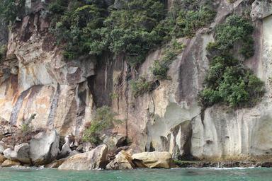 Keywords: rock new zealand sea nature landscape coast holiday steep water schroff travel tourism stone north island rocks green old geology splash boulders natural stones structure steinig whitianga