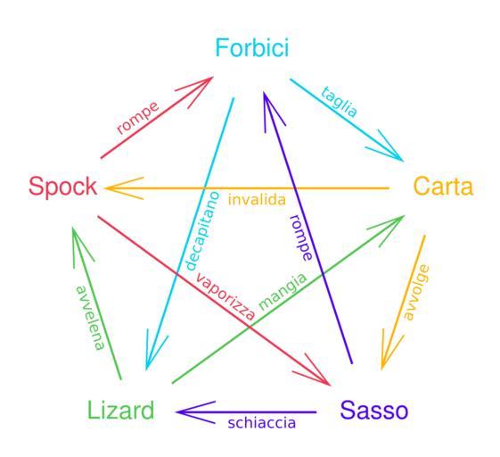 | Keywords: Rock Paper Scissors Lizard Spock it.svg The Big Bang Theory Traduzione di w File Rock paper scissors lizard spock png es Un diagrama en italiano de la resolución del juego «Piedra papel tijera lagarto Spock » Rock Paper Scissors Lizard Spock en svg 2010-06-20 16 29 UTC Rock Paper Scissors Lizard Spock en svg VidTheKid derivative work Garau anto 150px RetouchedPicture Rock Paper Scissors Lizard Spock en svg original upload log This image is a derivative work of the following images File Rock Paper Scissors Lizard Spock en svg licensed with PD-self 2009-04-18T06 02 46Z AnonMoos 400x365 40459 Bytes <nowiki>trimming margins vector data remains the same </nowiki> 2009-04-18T03 53 13Z VidTheKid 400x400 40433 Bytes <nowiki> en A diagram indicating which gestures beat which other gestures and by what action in a game of Rock-paper-scissors-lizard-Spock Made to replace derivativeFX The Big Bang Theory-related graphics Rock Paper Scissors Lizard Spock Legend in Italian |