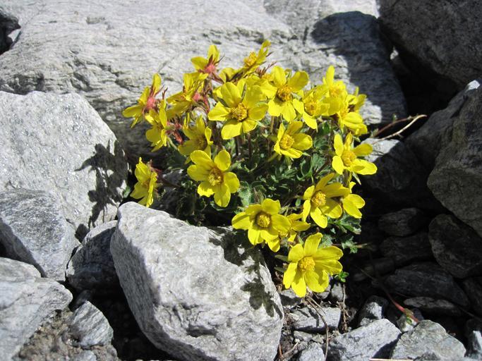 Keywords: rock yellow flowers mountain spring tenacity courage