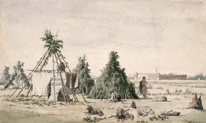 Keywords: Rocky Mountain Fort 1848 by Paul Kane.jpg en Cree or Assiniboin Lodges in Front of Rocky Mountain Fort Alta fr huttes cris ou assiniboines face au fort Rocky Mountain Alb http //collectionscanada gc ca/pam_archives/index php fuseaction genitem displayItem lang eng rec_nbr 2836589 rec_nbr_list 3632691 2057790 2895831 2836750 2836589 2836749 2836587 2836747 2897757 2837008 Kane Paul 1810-1871 1848 PD-old-100 Credit Library and Archives Canada Acc No 1981-55-46 Acquired with the assistance of a grant from the Minister of Communications under the terms of the Cultural Property Export and Import Act Copyright Expired This item is part of the David Ives Bushnell Collection of Canadiana Rocky Mountain House National Historic Site Indigenous peoples of Canada in art Paul Kane |
