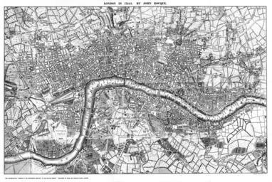 Keywords: Rocque's Map of London 1741-5.jpg en Original of this map is in the British museum and is 13 feet by 6 75 feet in 24 sheets This image is not the whole map but the central portion reproduced in Maps of Old London 1908 and is thus missing the turn of the river to the south at the east side of the map approximately a third of the rightmost sheets However the online version of the 1746 edition at www motco com though apparently complete and showing 24 sheets does not cover all the area shown on this version which shows Vauxhall and Nine Elms to the south Rocque has blocked in buildings only where they are adjacent to gardens fields and other open ground not in the central built-up area of the city; this makes his map somewhat clearer than some other historical maps As with many such images the dissected sheets are not necessarily accurately re-aligned or copied to the same density in the reproduction originally printed; the scanned image therefore reproduces these faults Mike Calder scan of map reproduced in Maps of Old London 1908 Mike Calder corrected scan of reproduction of map by John Rocque 2009-08-17 Old maps of London 1740s 1740s Maps by John Rocque |