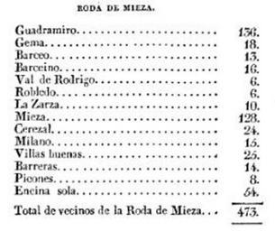 | Keywords: Roda de mieza.jpg  es Fragmento del libro con los datos del Censo de la Corona en el siglo XVI Censo de poblacion de las provincias y partidos de la Corona de Castilla en el siglo XVI Tomás González 1829 PD-old Tables information Diagrams in Spanish |